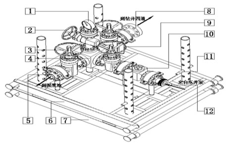(1)鉆井液正常循環無法正常進行情況下,利用壓井管匯往井里灌鉆井液。連接高壓泵,使鉆井液經單流閥進入井筒。