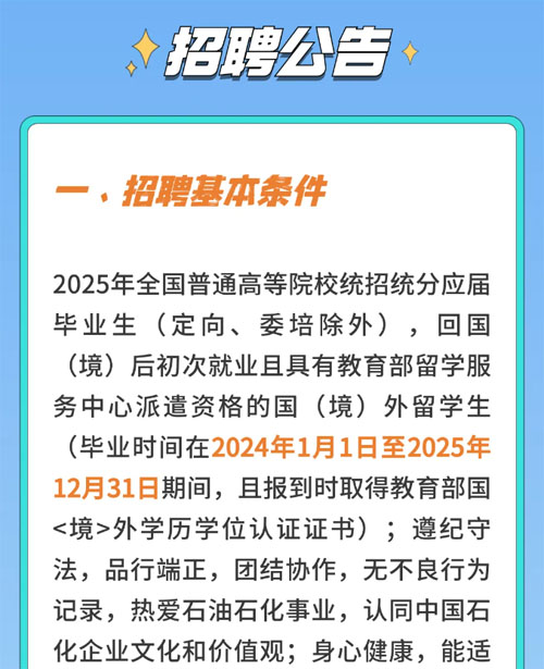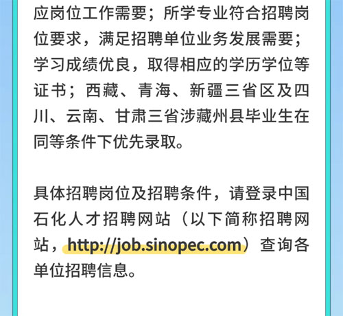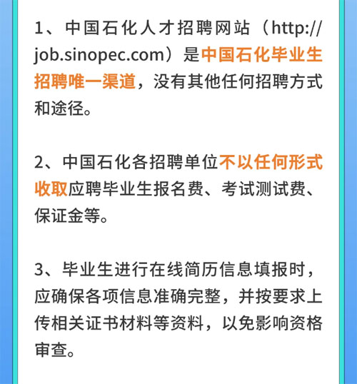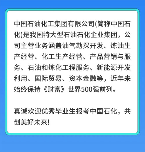 中國石化繼續保持畢業生引進規模和力度,計劃招聘超1萬人,已經連續六年保持1萬人以上校園招聘規模。這是中國石化全面貫徹落實黨中央、國務院“穩就業、保就業”決策部署的重要舉措,為促進高校畢業生高質量充分就業,推動經濟發展、社會穩定貢獻積極力量。